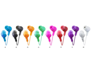 Gumy headphones with soft rubber/oval body in eight vibrant colors
